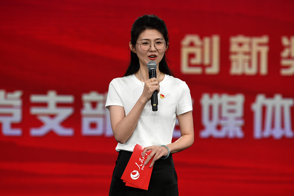 人民日?qǐng)?bào)社機(jī)關(guān)黨委常務(wù)副書記魏建周向選手提問
